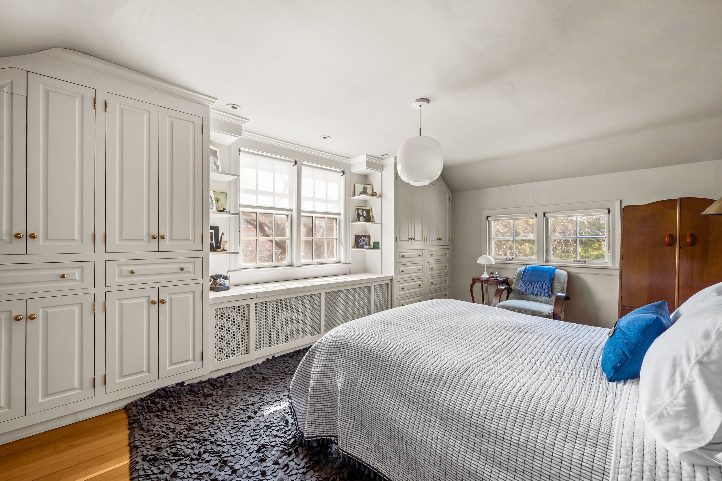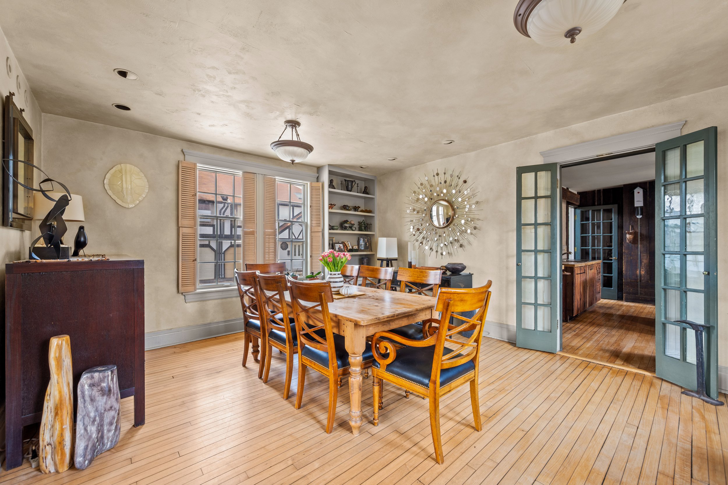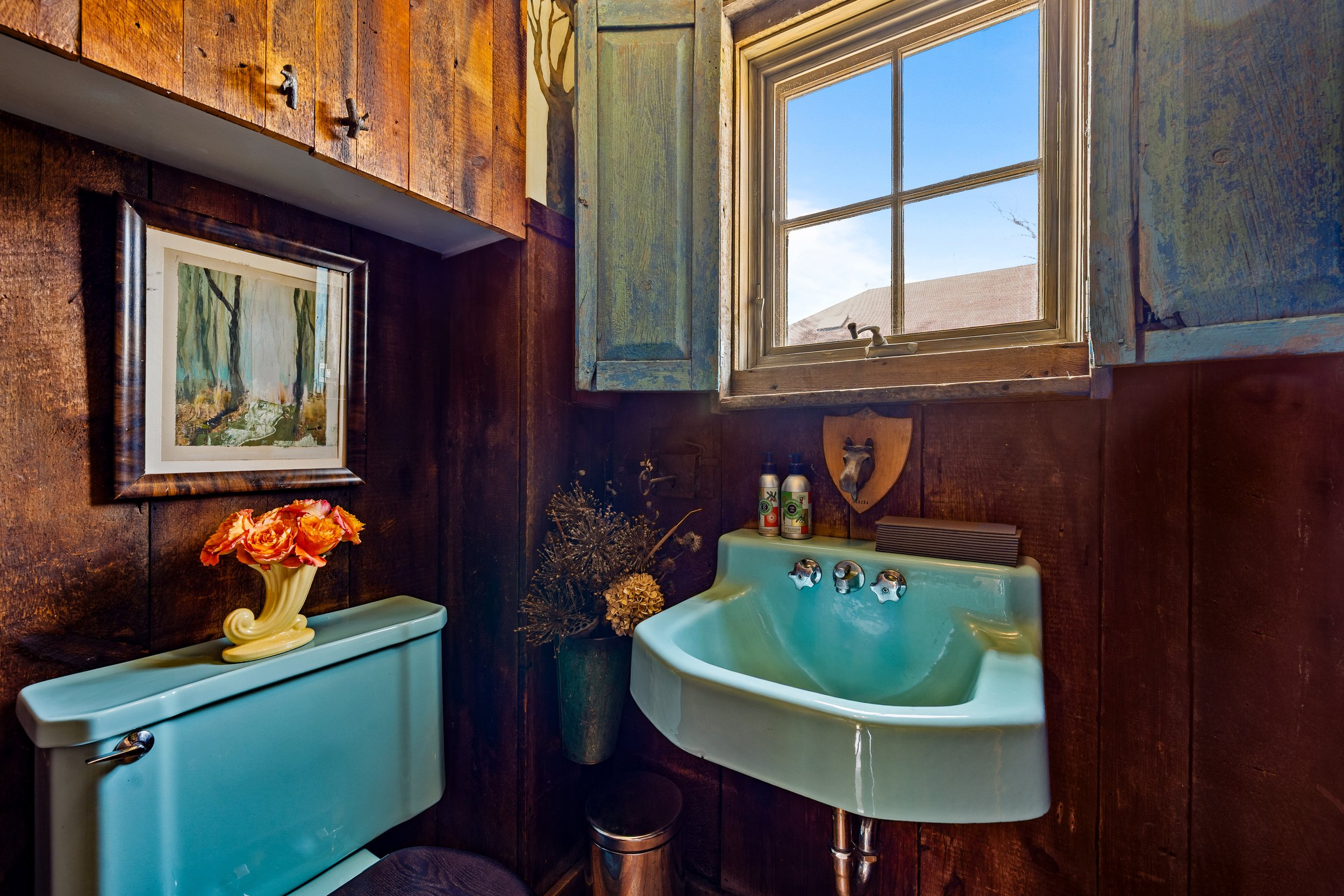 The main house features three bedrooms and one and a half baths, with warm, inviting living spaces, beautifully proportioned rooms, timeless details, and a character-rich kitchen and dining area that reflect the home’s artistic spirit. Just off the kitchen, the climate-controlled greenhouse is one of the home’s most memorable features. Feeling like a natural extension of the living space, it offers a remarkable year-round setting for dining, relaxing, entertaining, or simply enjoying the surrounding gardens. Upstairs, the second floor includes three bedrooms and a beautifully renovated full bathroom, with each space filled with natural light and charm. The basement level includes a laundry area and plenty of storage space.