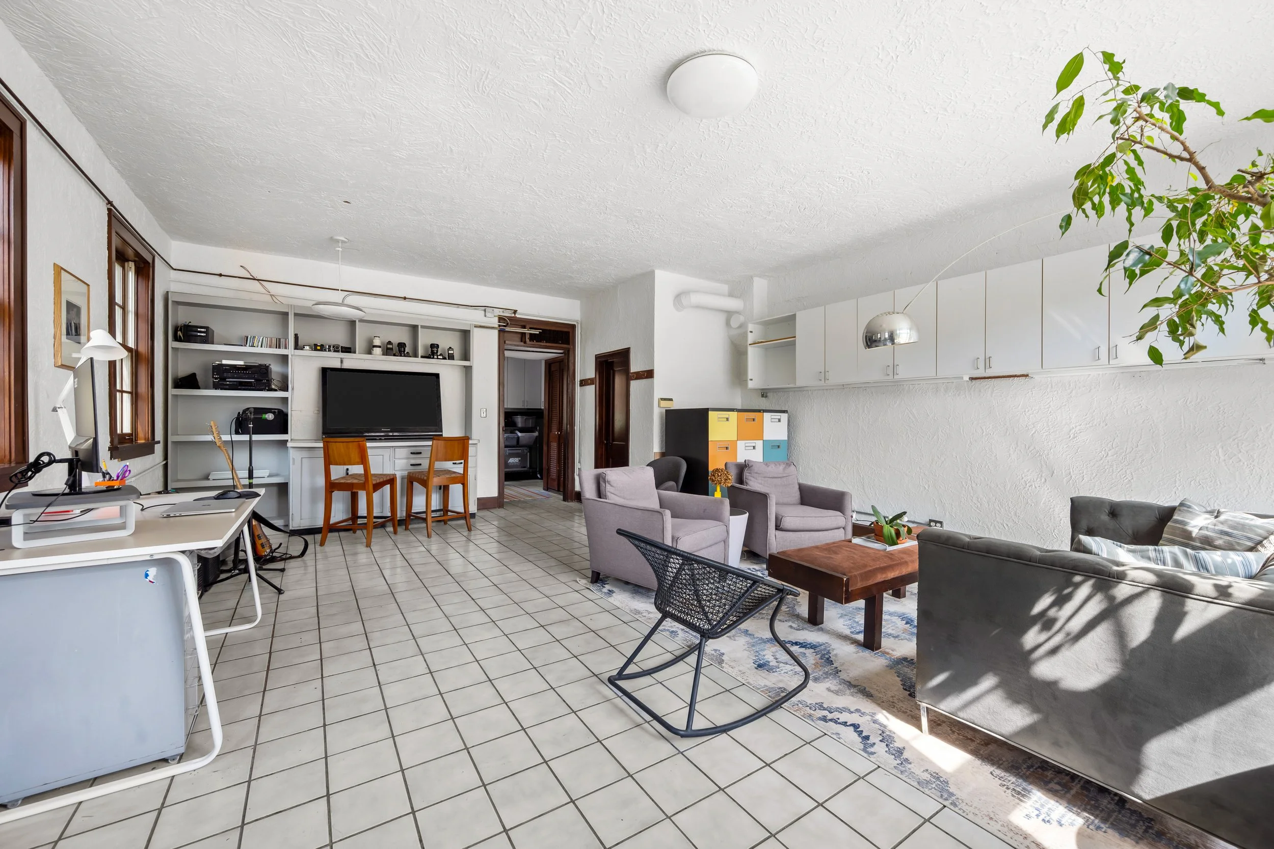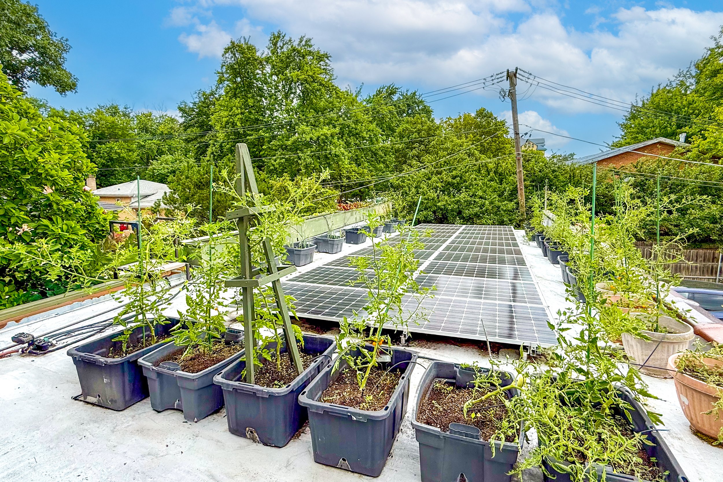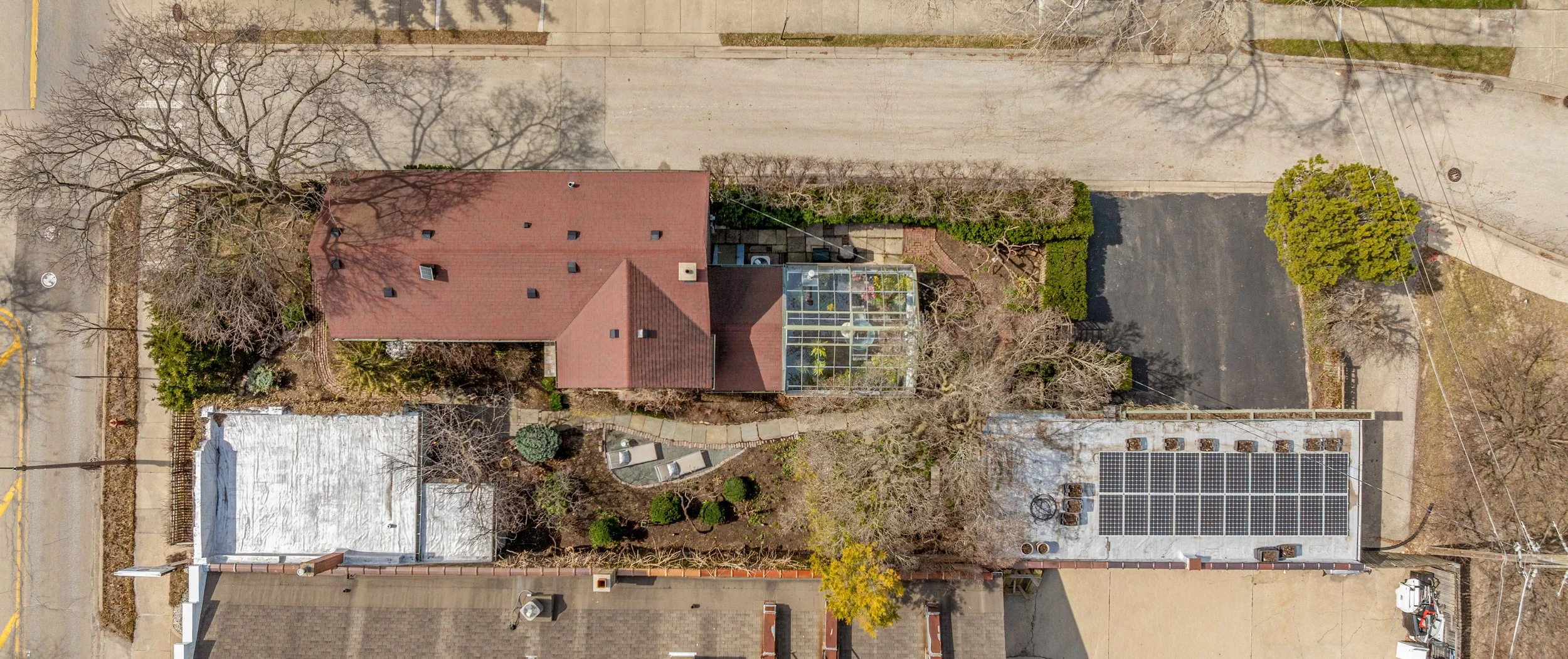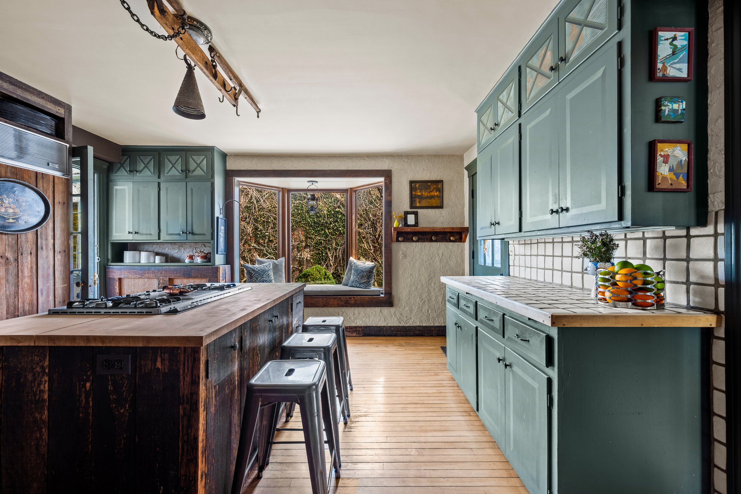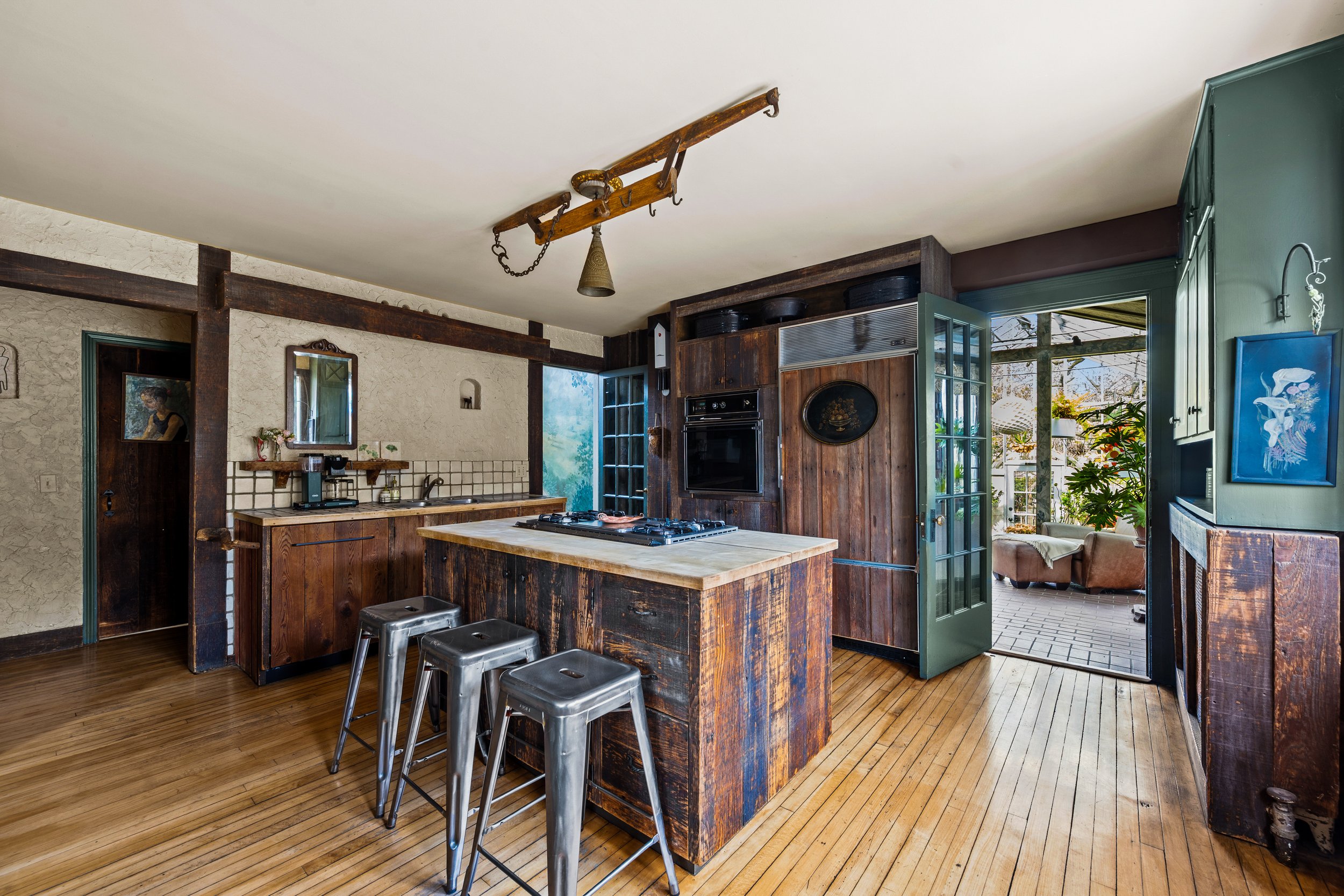 The separate cottage/studio adds over 500 square feet with its own half bath, offering exceptional flexibility for a home office, creative studio, fitness space, guest overflow, or whatever your needs may be. The workshop/garage provides space for three cars, an expansive work area, and storage. The garage roof includes solar panels and a rooftop garden, adding yet another layer of utility and originality.