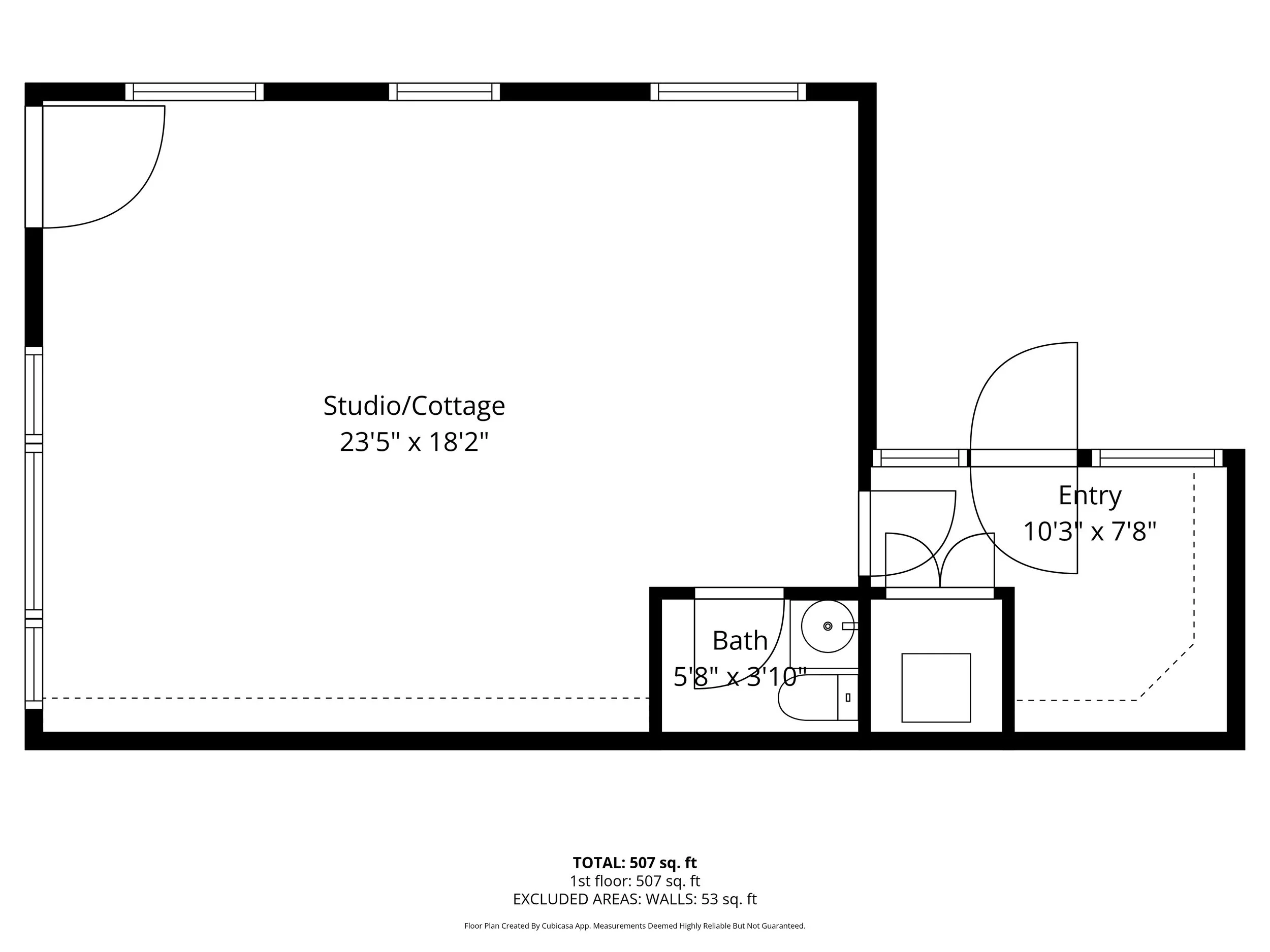 Cottage/Studio: 507 sq.ft., 1/2 bath